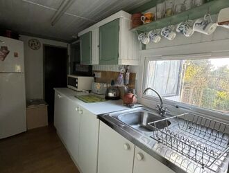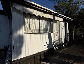 MOBIL-HOME COMPRENANT COIN SALON, CUISINE, UNE CHAMBRE AINSI QU'UNE SALLE DE BAIN AVEC WC PUIS UN COIN VERANDA.