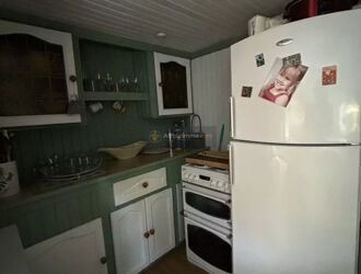 SPACIEUSE VERANDA AVEC CUISINE ET COIN SALON. CHALET ENTIEREMENT RENOVE AVEC COIN SALON ET COIN REPAS, UNE CUISINE EQUIPEE AINSI QU'UNE CHAMBRE DOUBLE AVEC SALLE D'EAU AVEC WC.