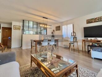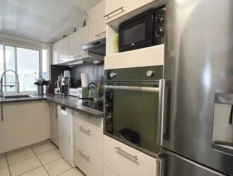 Une pièce de vie lumineuse, ouvrant sur une cuisine aménagée et équipée.