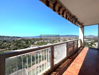 Cet appartement comprend une entrée, un grand séjour de 25 m² donnant sur une terrasse de 15m² exposée SUD avec vue dégagée jusqu'à la mer, une cuisine indépendante et accès terrasse, deux chambres dont une avec balcon, un dégagement avec placards, une salle de bains et WC séparés.