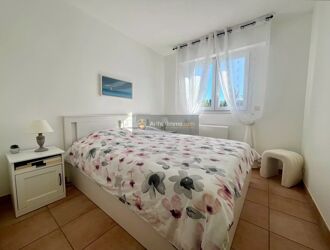 L’appartement offre un séjour ouvrant sur une terrasse de sans vis-à-vis vue sur la verdure avec aperçu mer. La cuisine est semi ouverte sur la pièce de vie, l’espace nuit se compose de deux chambres confortables avec placards, d’une salle de bains et de WC séparés.