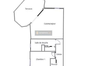 Appartement de type deux pièces, au calme, grand hall d'entrée avec placard, séjour avec cuisine aménagée et équipée donnant sur une terrasse lumineuse, bien exposée. Une chambre avec placard, une salle d'eau avec WC, belle terrasse sans vis à vis.